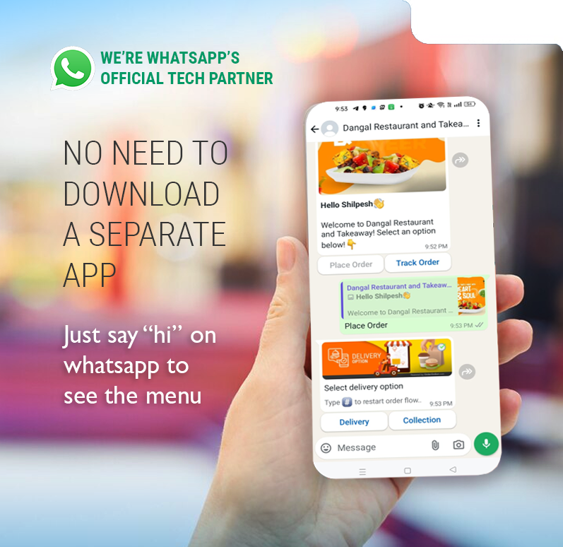 Enjoy effortless ordering with OrderOnBot. Simply open a WhatsApp chat with the restaurant to browse the menu, customise your selections, and pay — all without leaving the conversation. Your order progress is tracked in real time, and reordering your favourites takes just a few taps.