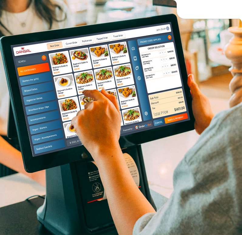 Update your order as you go, then check out with safe, built-in card payments — no extra apps needed.